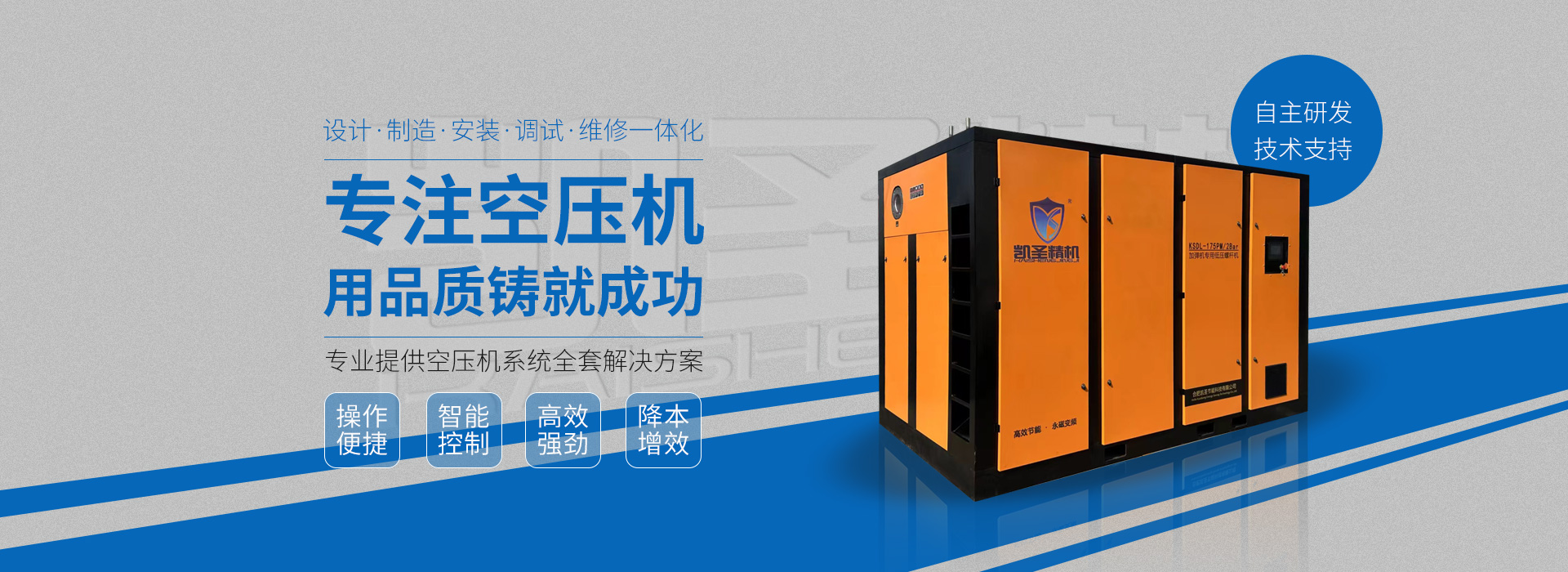 合肥凱圣節(jié)能科技有限公司是從事永磁變頻螺桿壓縮機系統(tǒng)的設(shè)計、制造、安裝、調(diào)試、維修與一體的公司。 在多年的螺桿空壓機研發(fā)與推廣歷程里,凱圣聚集和培養(yǎng)了大量壓縮機技術(shù)設(shè)計和管理人員,迅速發(fā)展成為集研究、生產(chǎn)、銷售、服務(wù)等環(huán)節(jié)為一體、嚴(yán)格按照標(biāo)準(zhǔn)執(zhí)行的企業(yè),公司成立開始,即以滿足客戶的實際需求為己任,大力開拓國內(nèi)外節(jié)能型空壓機市場,并始終保持創(chuàng)新精神,全力研發(fā)更為節(jié)能的螺桿式空壓機,努力站在空壓機節(jié)能領(lǐng)域的排頭位置。 應(yīng)用范圍:公司產(chǎn)品廣泛應(yīng)用于機械、輕工、紡織、食品、石油、化工、冶金、礦山、電力、城建、醫(yī)學(xué)研究和科研等各行業(yè)中,將為節(jié)約能源做出巨大貢獻(xiàn)。公司秉承“信譽至上,...